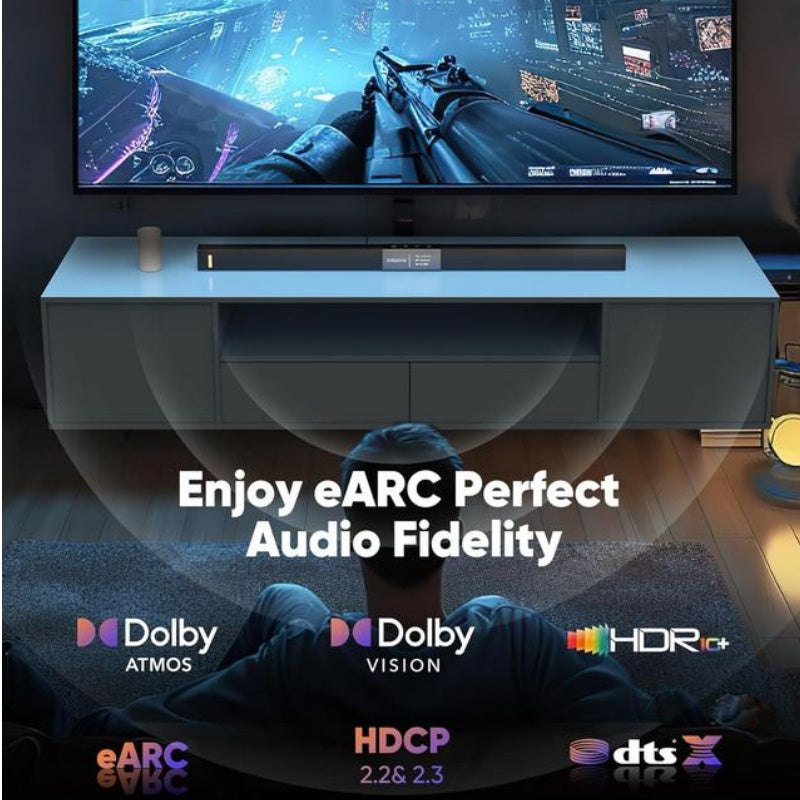 EARC FOR PERFECT AUDIO FIDELITY: Enhanced Audio Return Channel (eARC) ensures high-quality, uncompressed sound transmission from your TV to audio devices, delivering immersive audio that matches the stunning visuals.