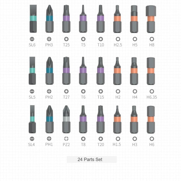 👉 24 industrial S2 chrome-molybdenum alloy steel screwdriver bits, continuously heat-treated. 5 types of screwdriver heads to meet the needs of professional use, at home, at work, DIY, and maintenance. 6.2-degree ratchet design, 58-tooth forward and reverse ratchet structure, saves 80% of the effort.👨🔧